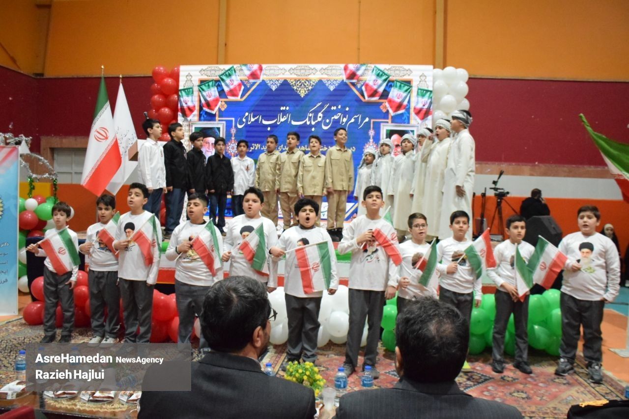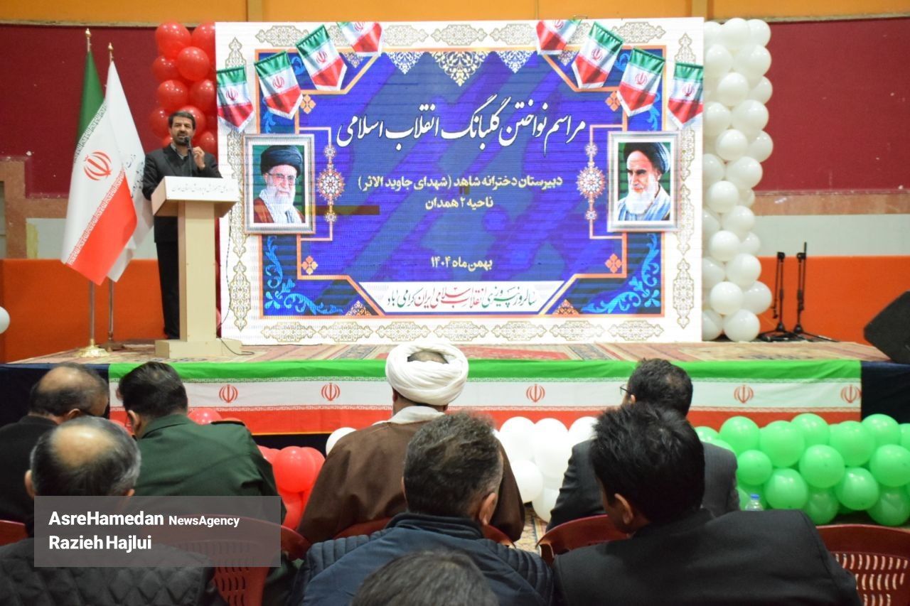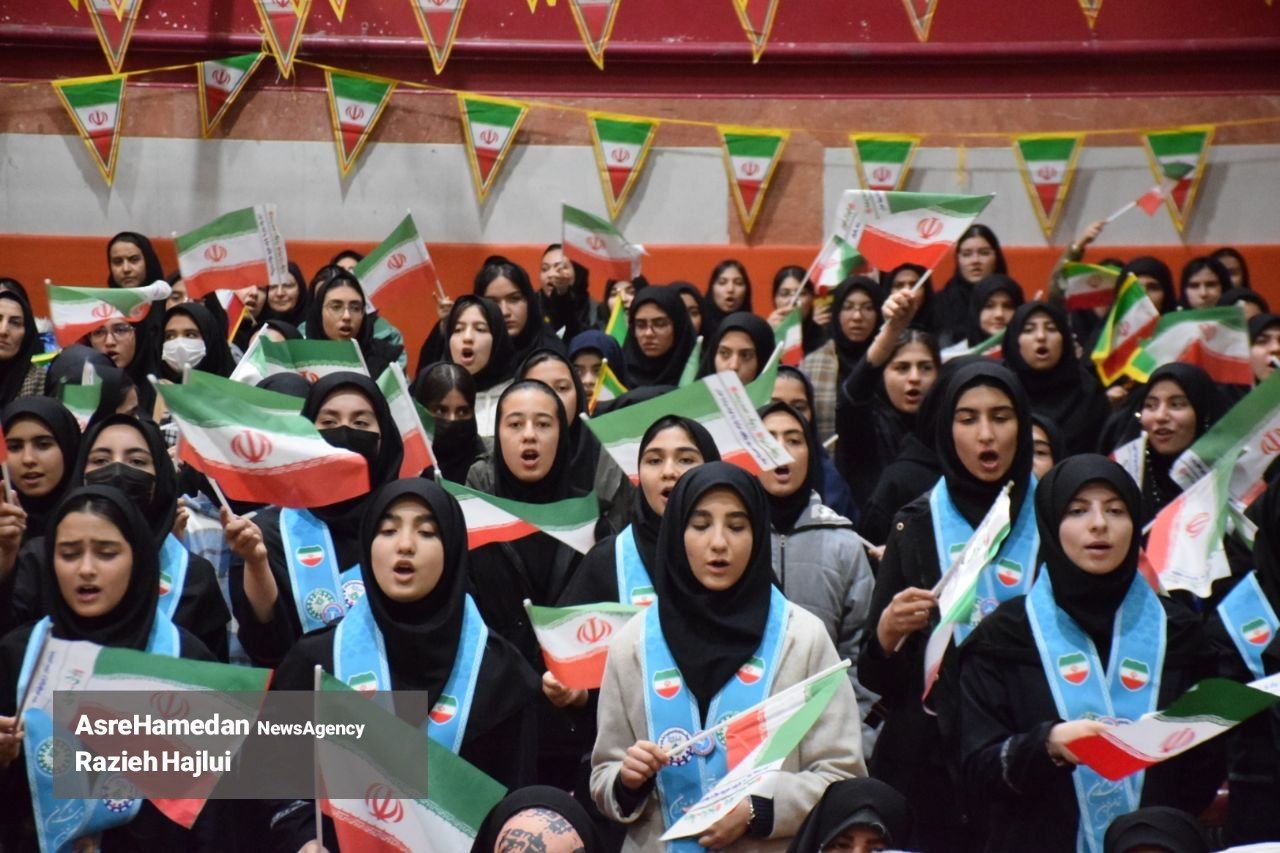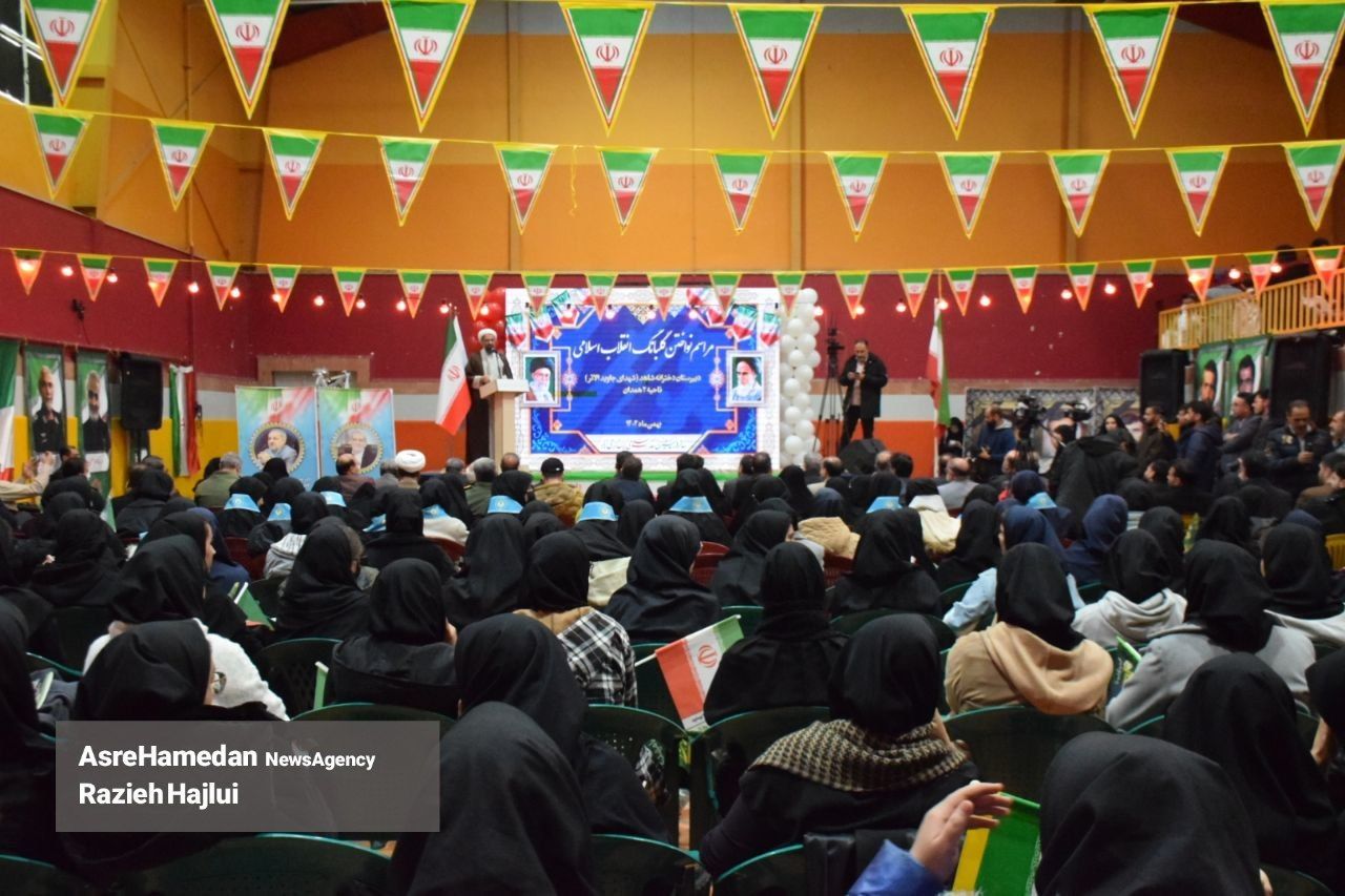 آئین نواختن گلبانگ انقلاب اسلامی در دبیرستان شهدای همدان برگزار شد.