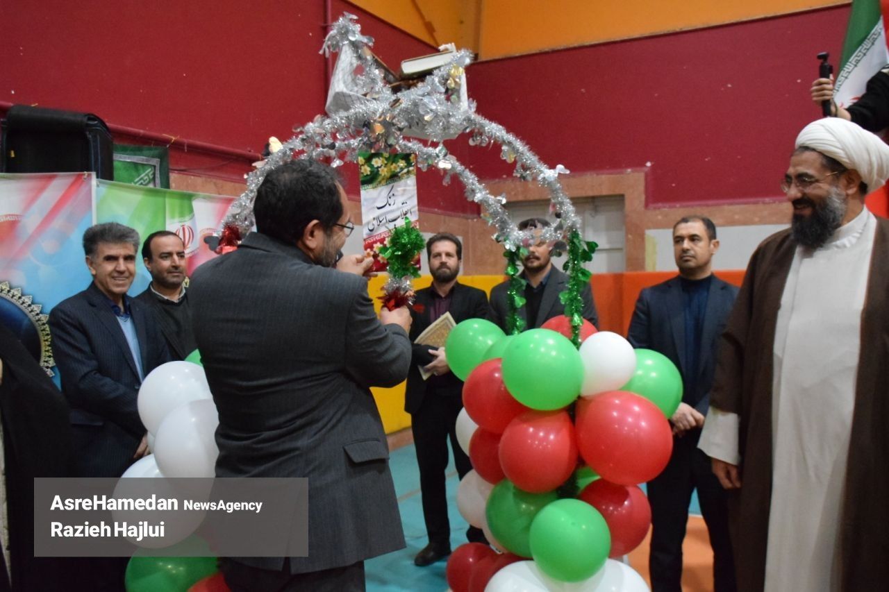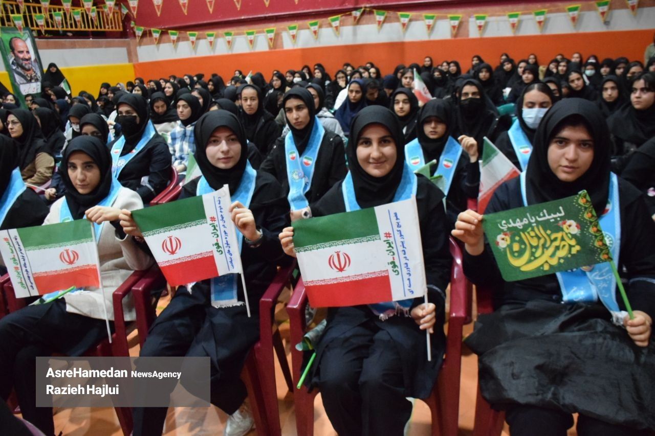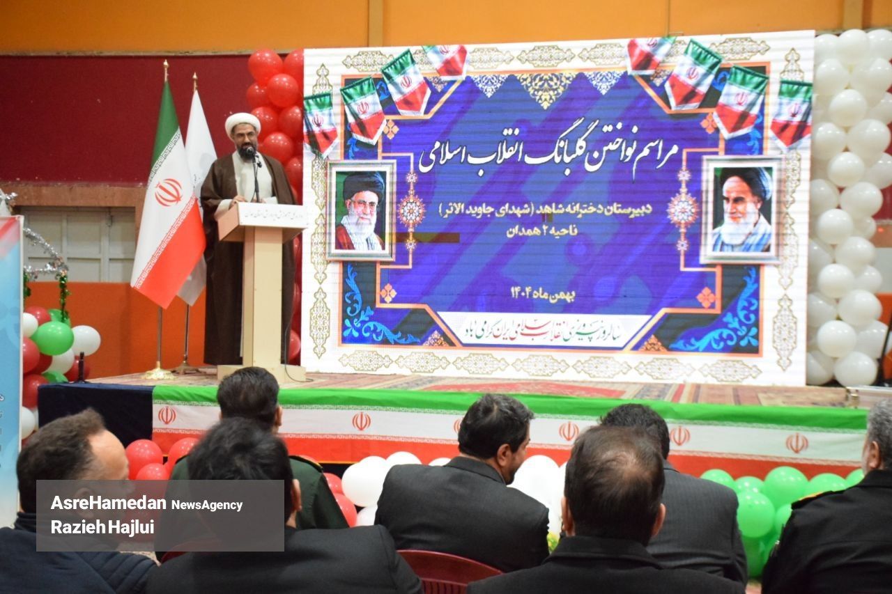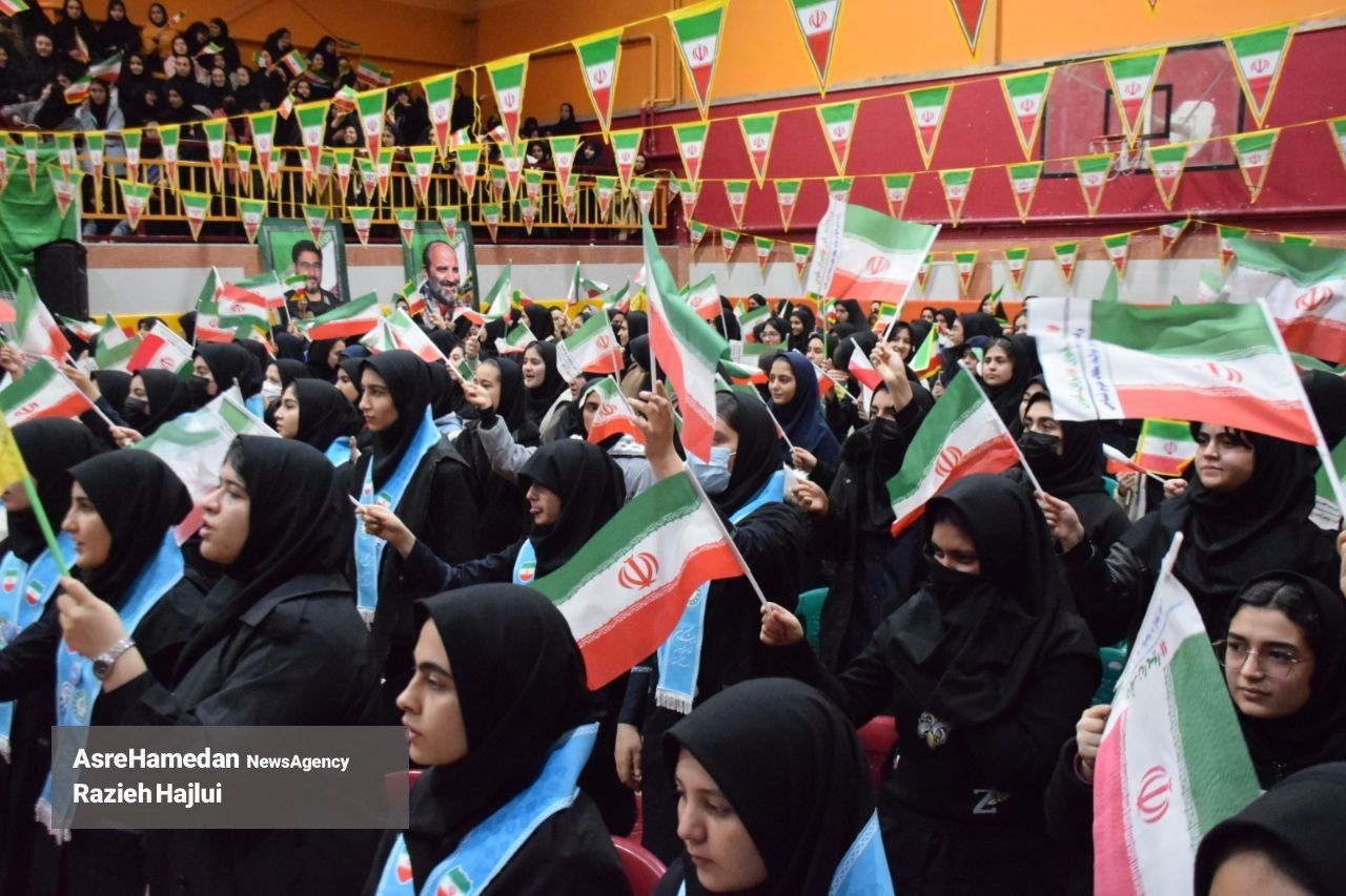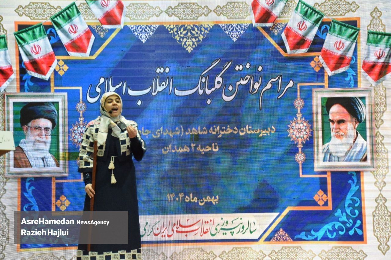 آئین نواختن گلبانگ انقلاب اسلامی در دبیرستان شهدای همدان برگزار شد.