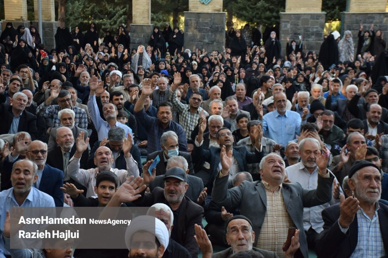 نماز استسقاء (طلب باران) با حضور اقشار مختلف مردم مؤمن همدان در فضای باز پارک مردم این شهر اقامه شد.